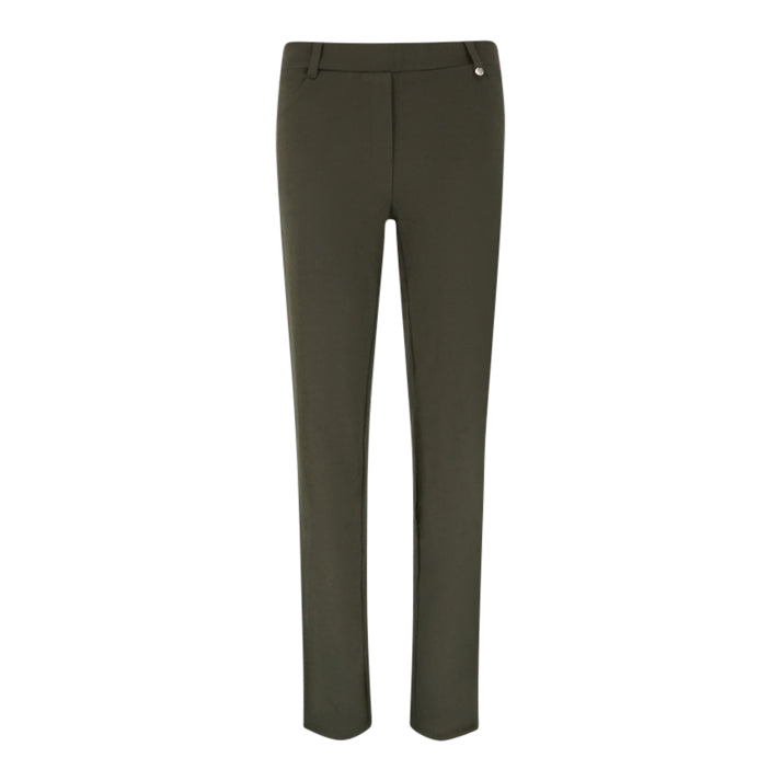 Vlotte stretch pantalon met elastieke tailleband met lusjes om een riem doorheen te dragen