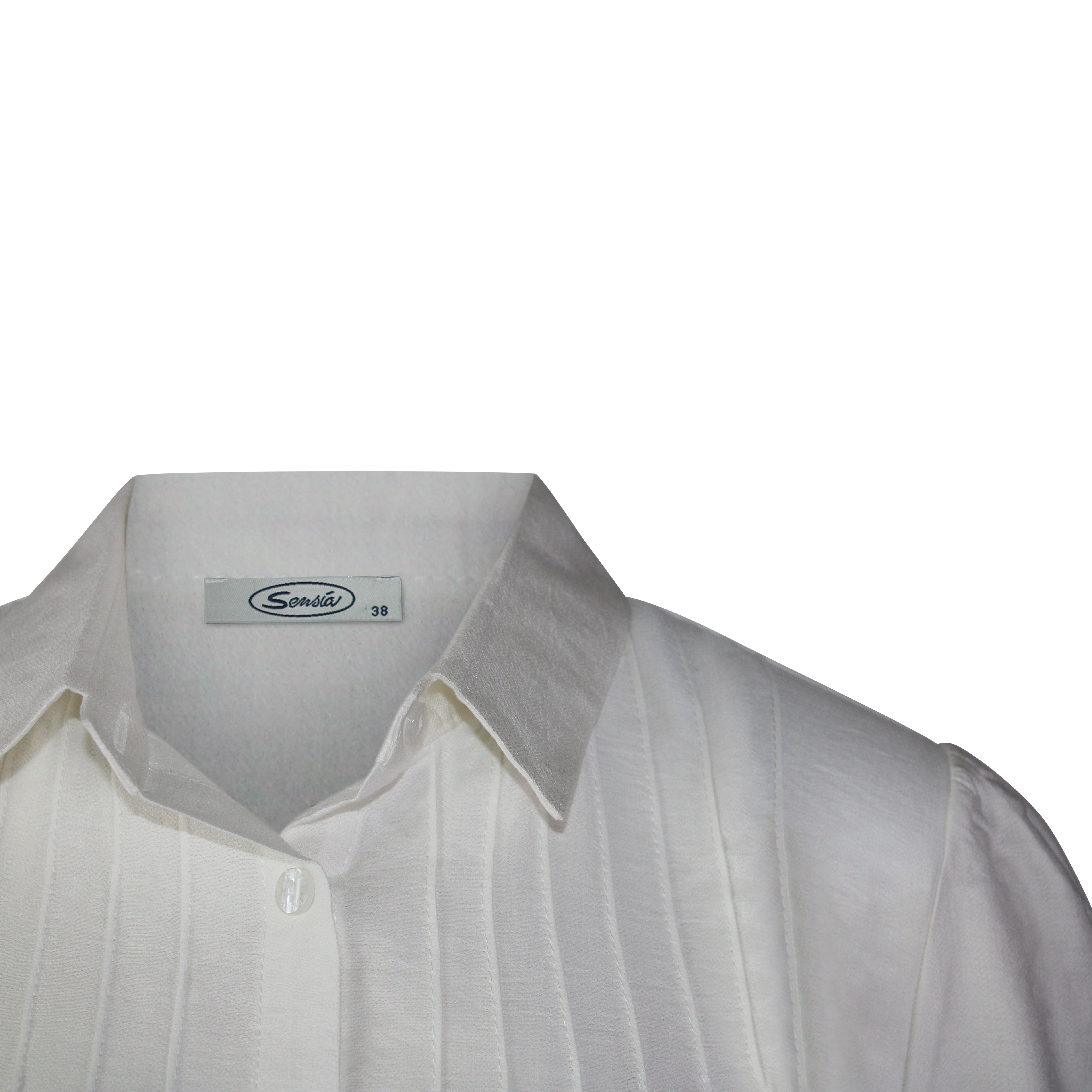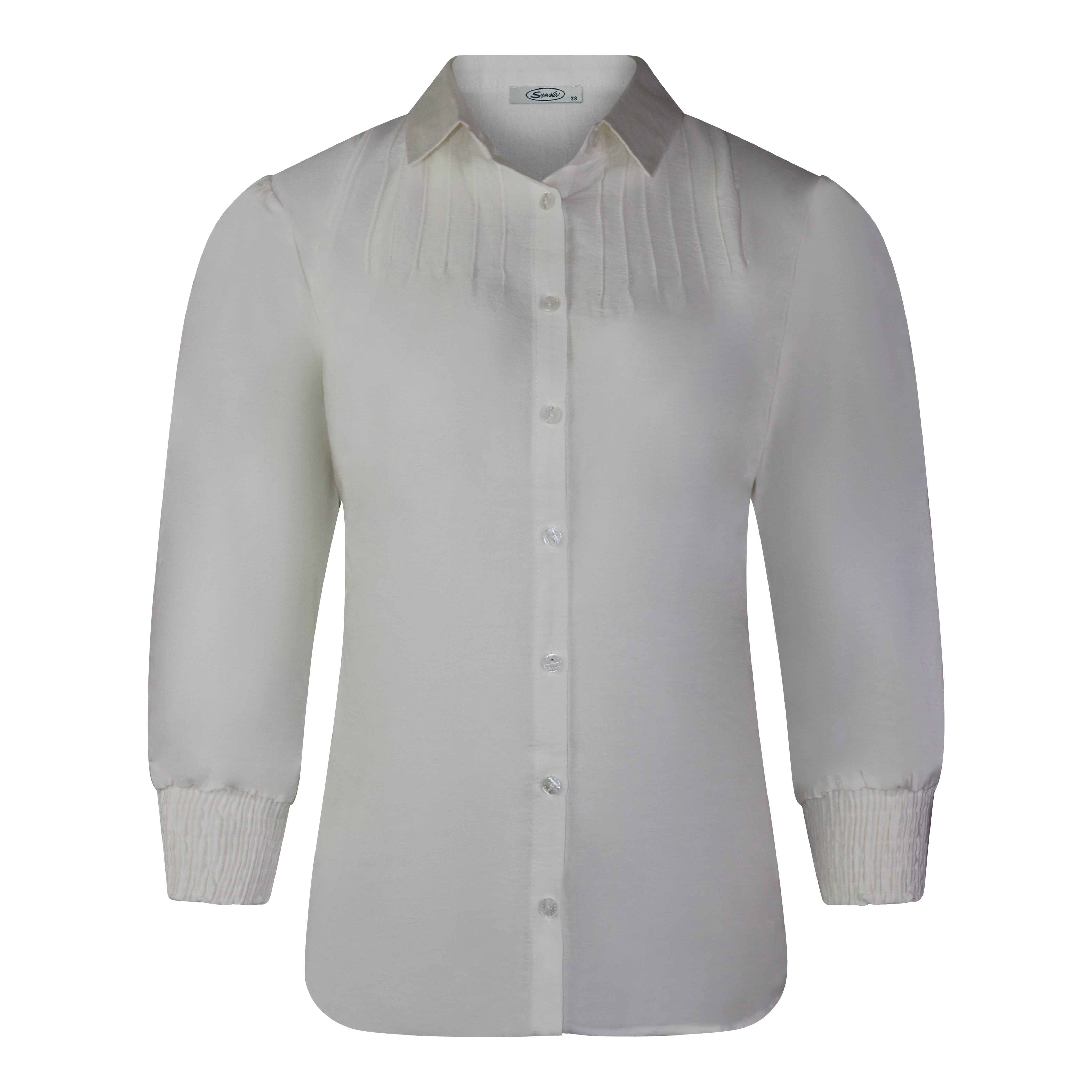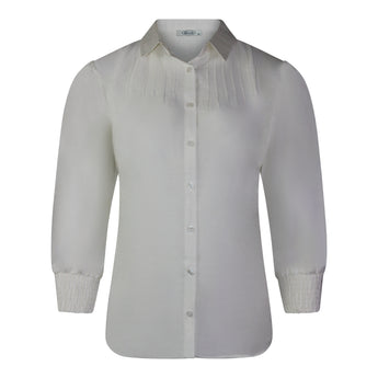 Blouse Uni Wolwit Gesmokte Mouw