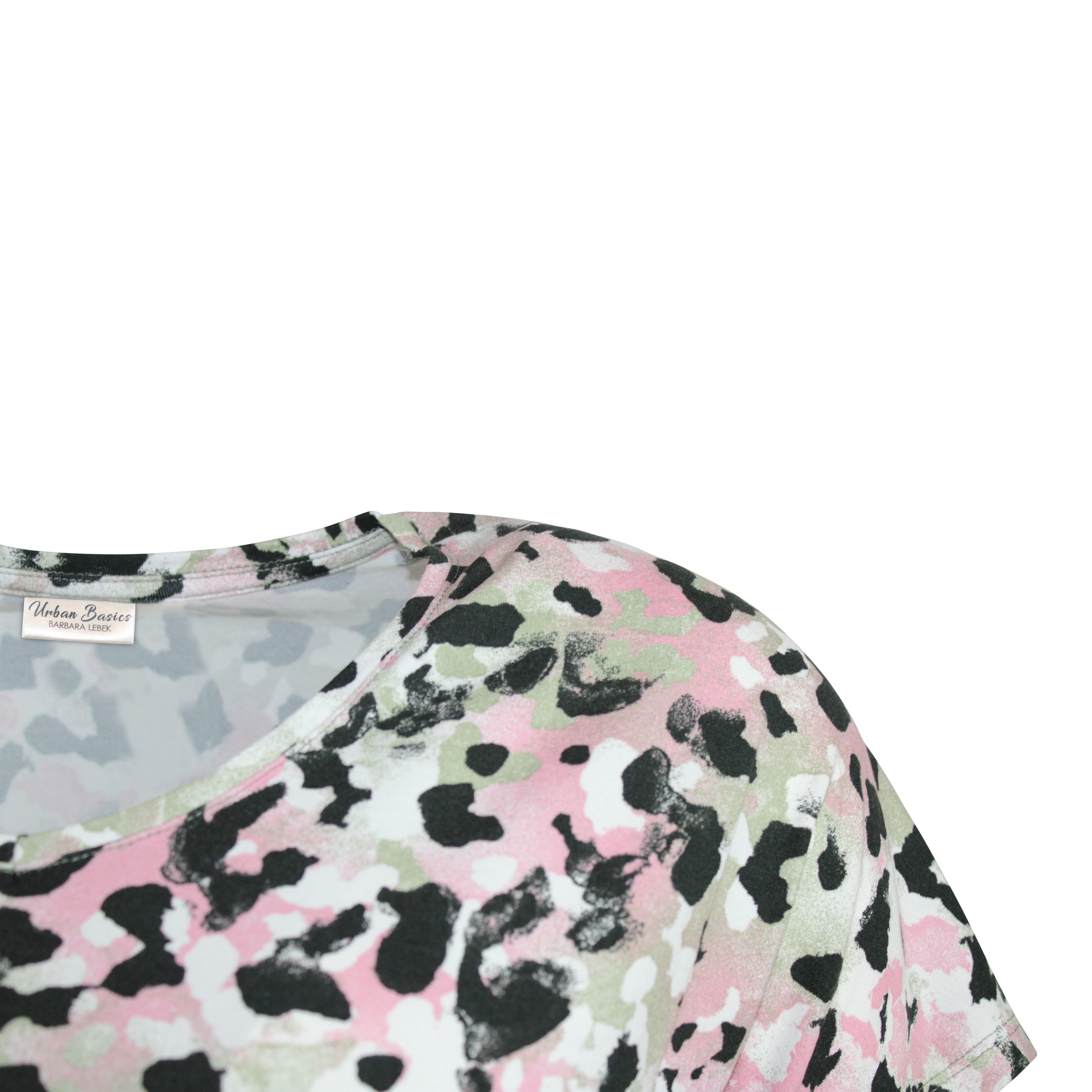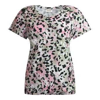 Blouson in een zachte leopard print met olijf- en roze tinten. De V-halslijn en de speelse vlindermouwtjes geven het geheel een vrouwelijke en luchtige uitstraling. De stof voelt zacht en soepel aan en is gemaakt van een comfortabele, elastische viscosekwaliteit. Een stijlvolle must-have voor je garderobe!