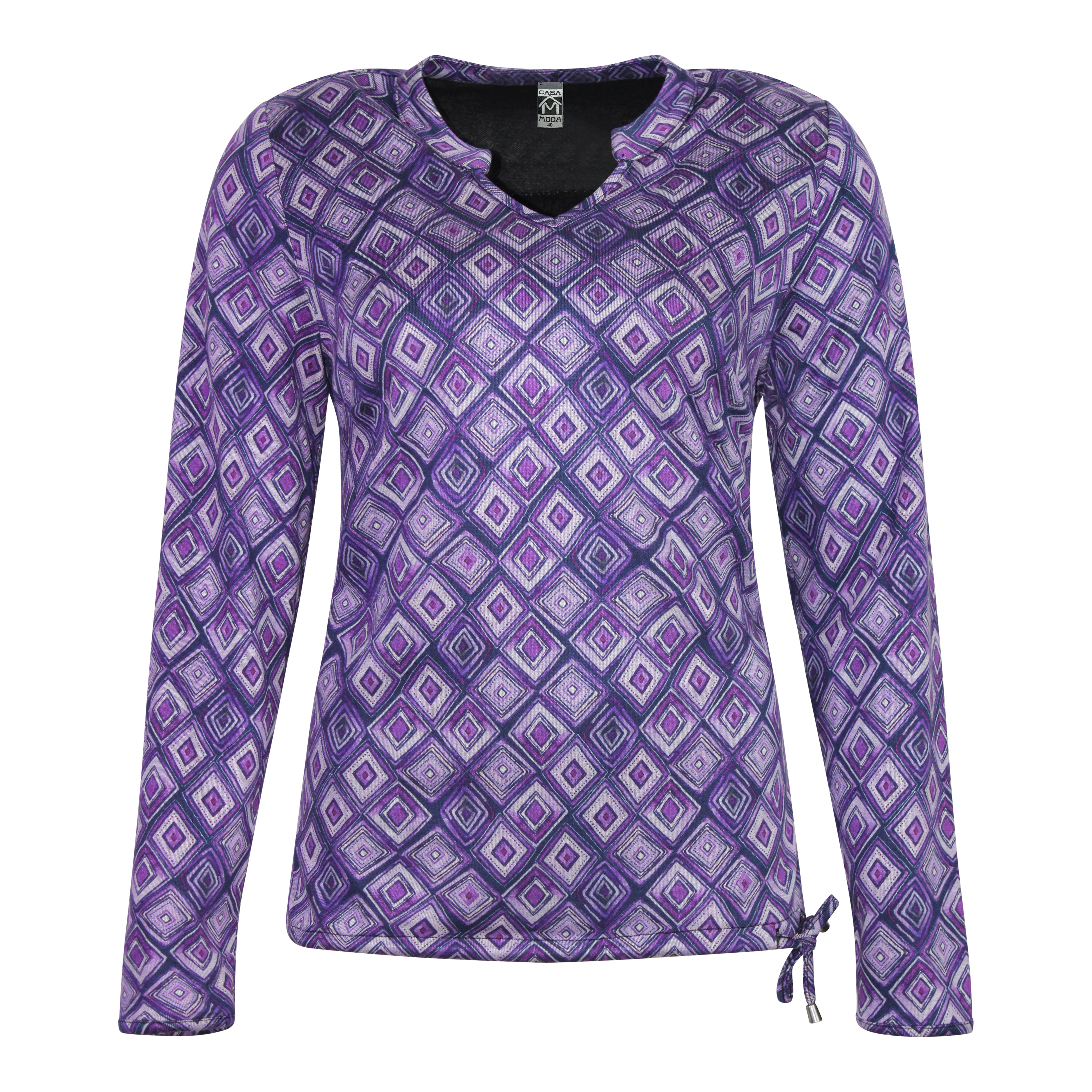 Klassieke blouson in zachte najaarstinten met opstaand boordje en splitje middenvoor. In de zoom is een verstelbaar koord verwerkt. De blouson heeft een recht model en lange mouwen. De blouson voelt soepel en zacht aan en is gemaakt van een jersey kwaliteit met optimaal draagcomfort.