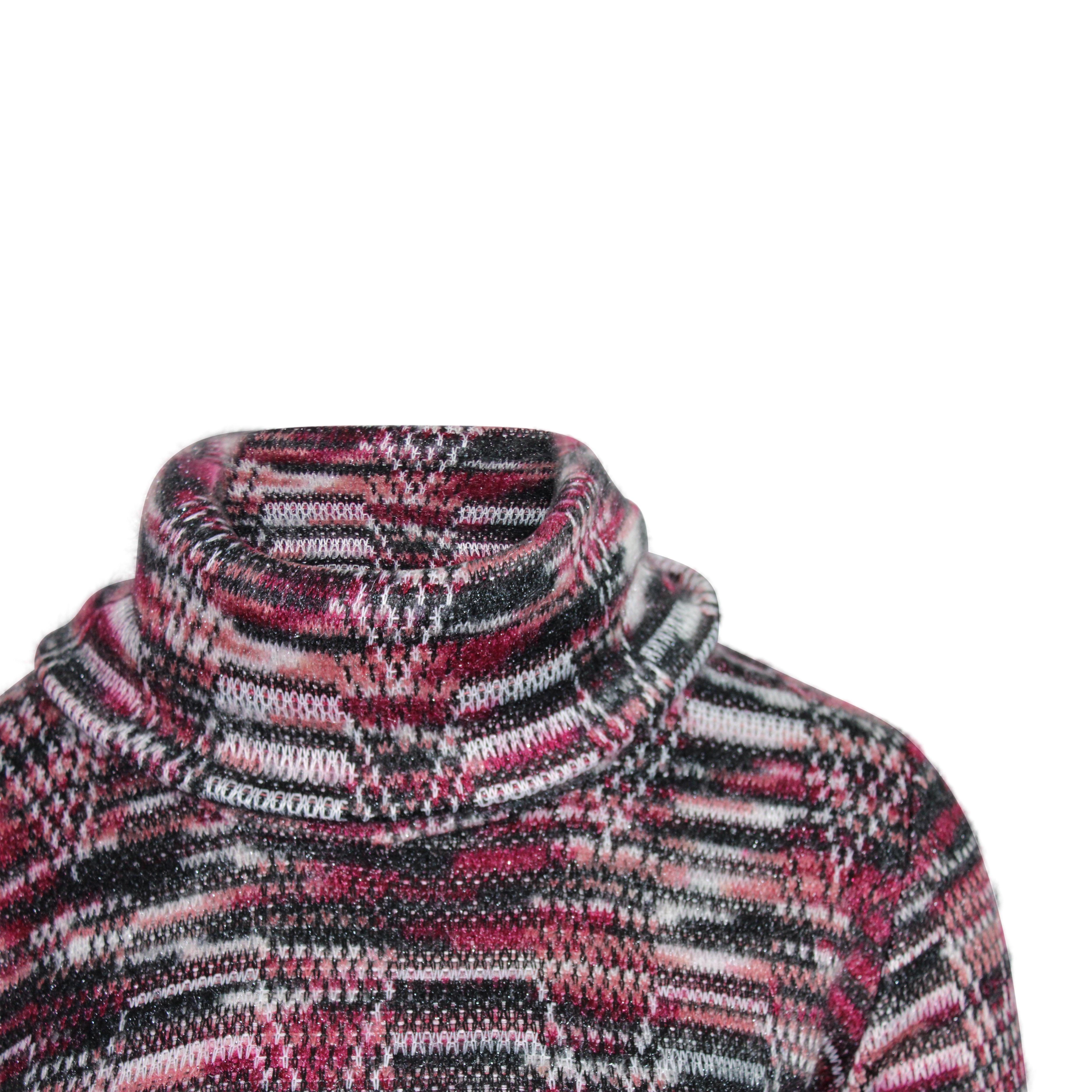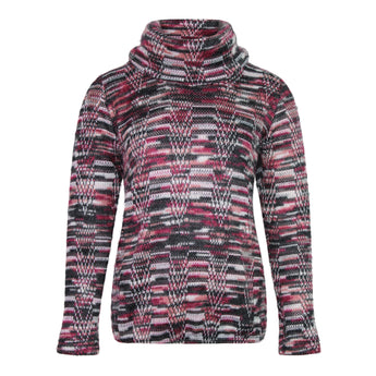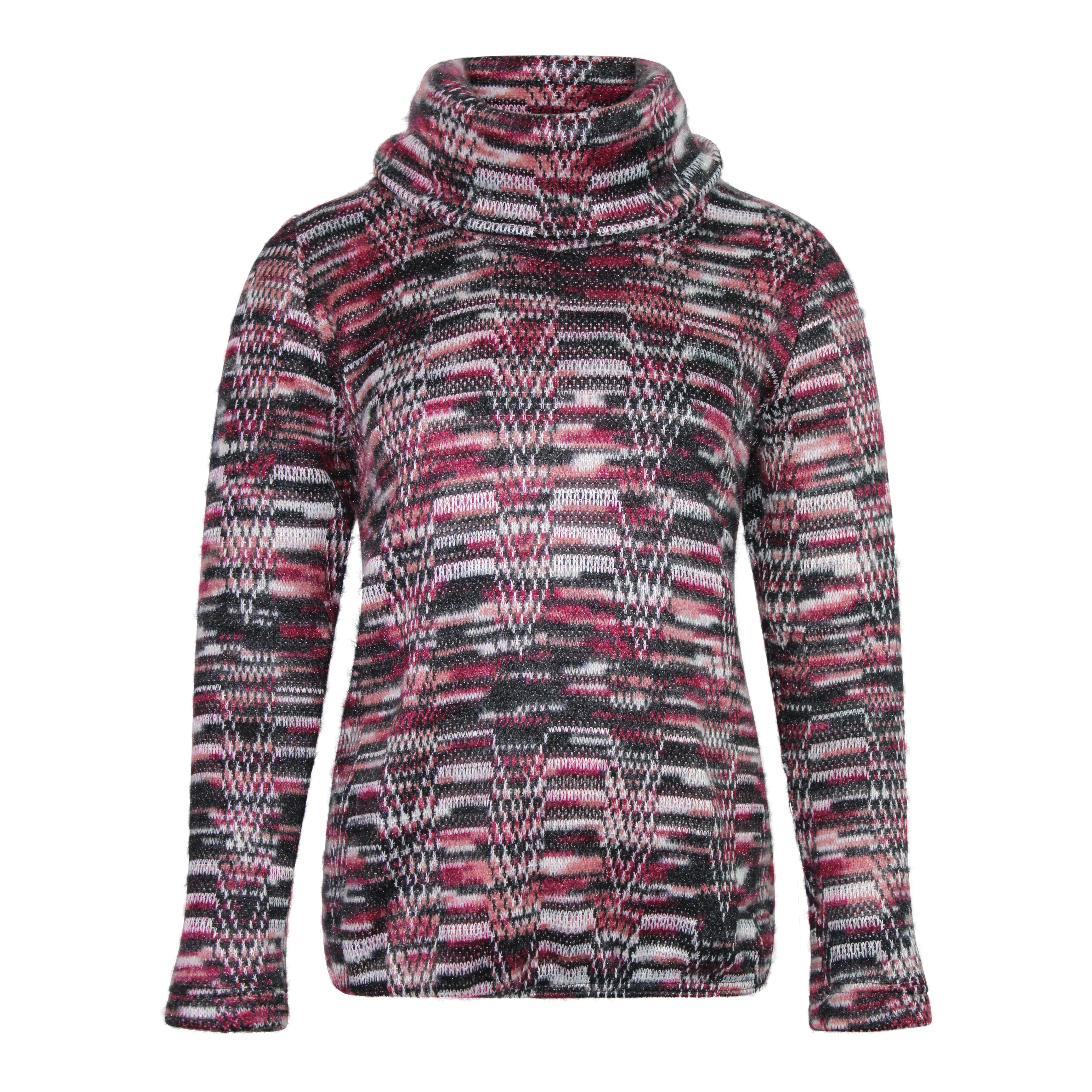 Blouson met ruime col in een zachte gebreide kwaliteit met een kleurencombinatie van cyclaam en zwart. In de zoom is een dunne rand elastiek verwerkt, wat zorgt voor een licht blousend effect. De blouson voelt heerlijk zacht en behaaglijk aan en heeft een optimaal draagcomfort. Een echte eyecather!