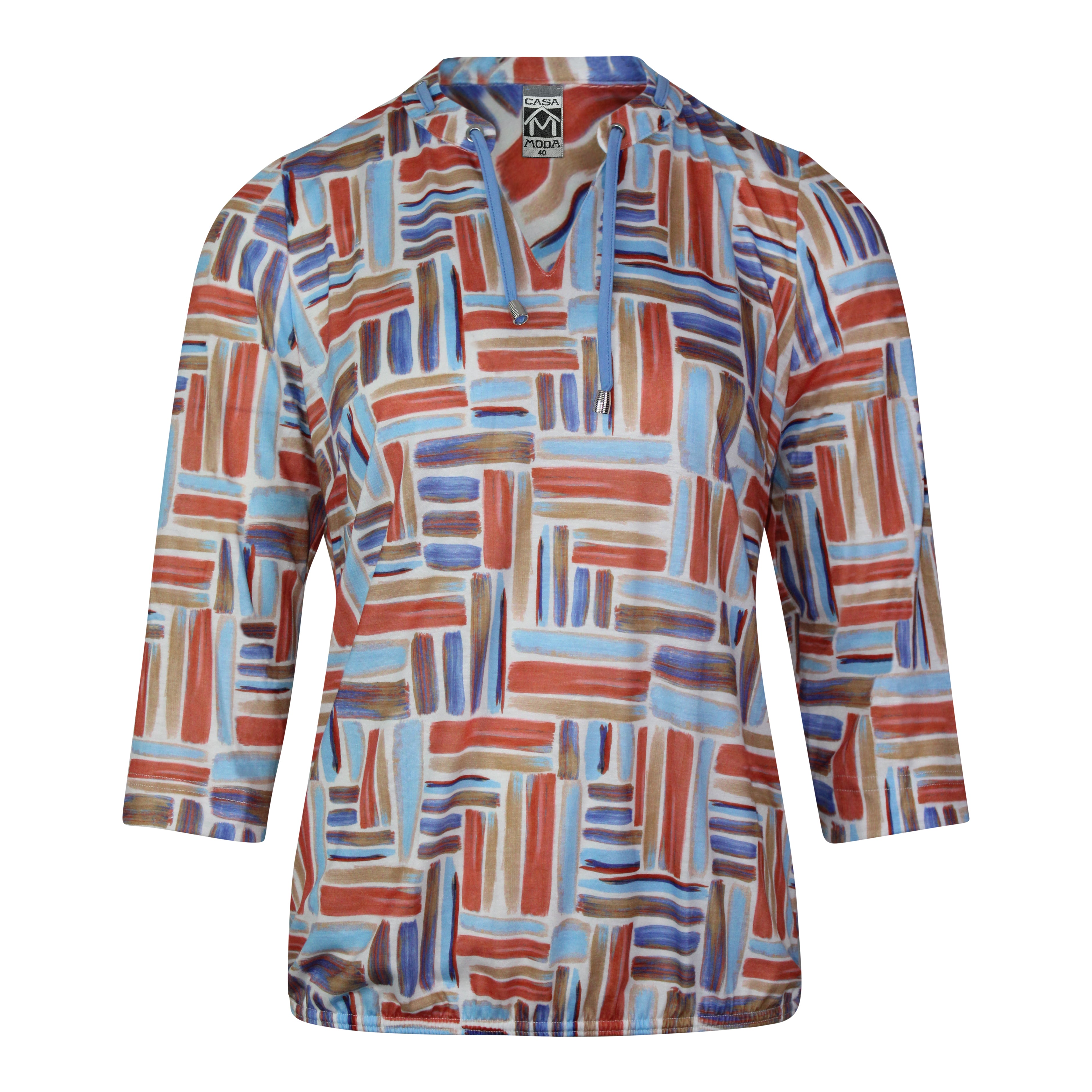 Deze prachtige blouson is een stijlvolle en comfortabele toevoeging aan je garderobe. De ronde halslijn met een subtiele split middenvoor en een verfijnd koordje geven de blouson een vrouwelijke en speelse uitstraling. In de zoom is een dun elastiek verwerkt wat zorgt voor een licht blousend effect.