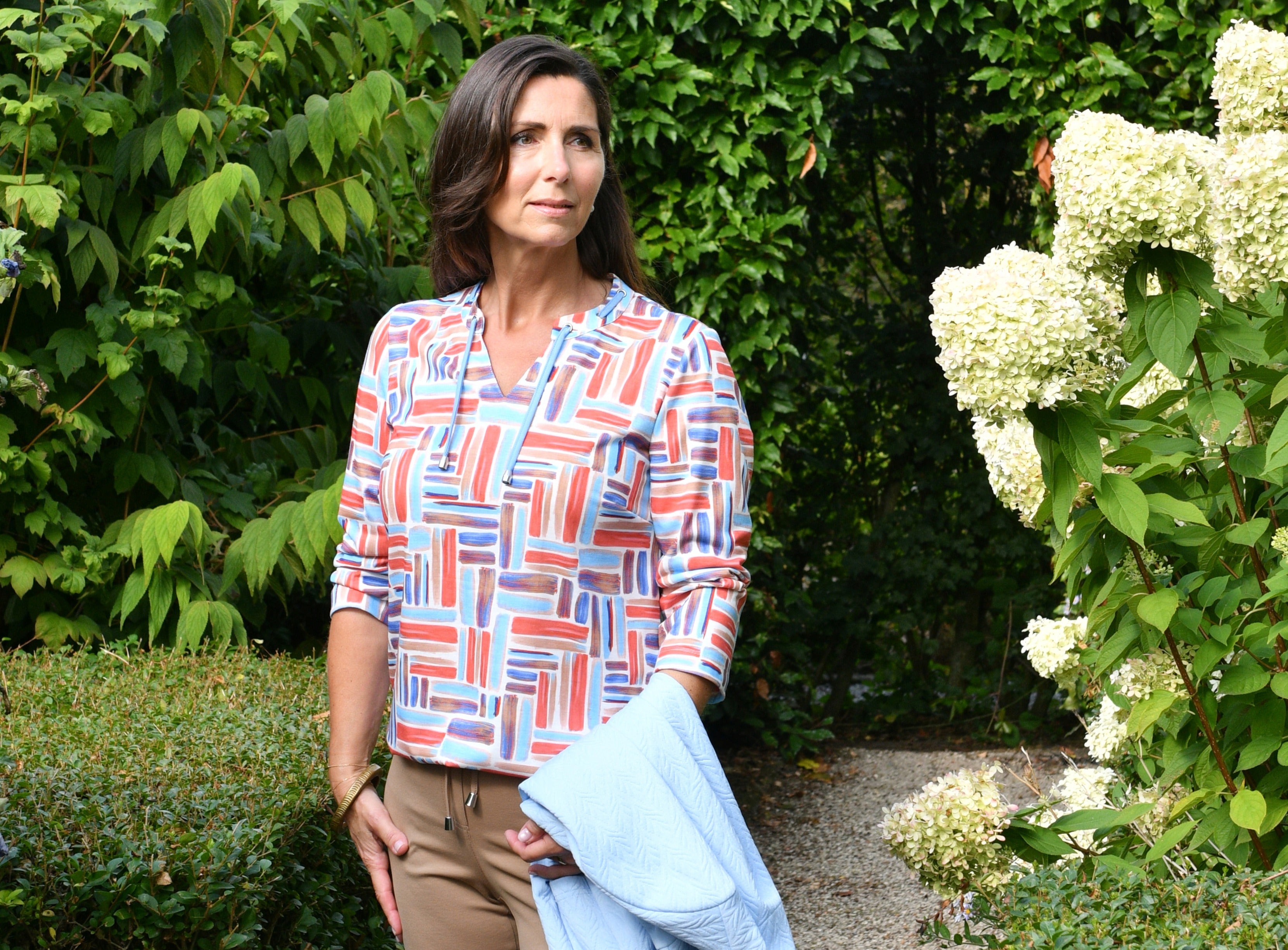 De 3/4 mouwen maken de blouson perfect voor elk seizoen. De stof voelt zacht en soepel aan op de huid en biedt een prettig draagcomfort.