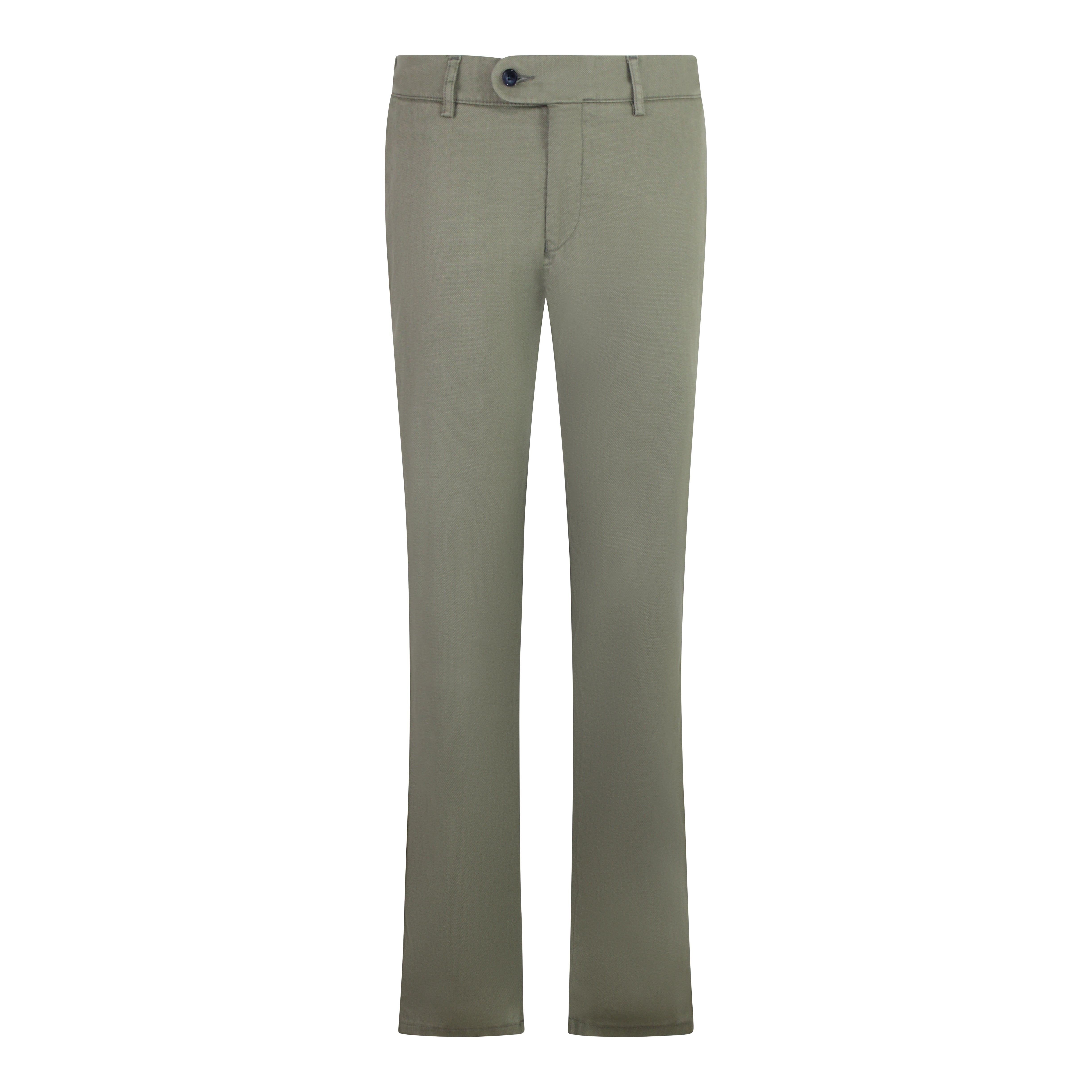 klassieke herenpantalon met stretch tailleband en lusjes om een riem te dragen. De herenpantalon heeft een sluiting en steekzakken in de naden. De achterzakken kunnen afgesloten worden met een knoop. De pantalon voelt soepel en luchtig aan en heeft een optimaal draagcomfort.