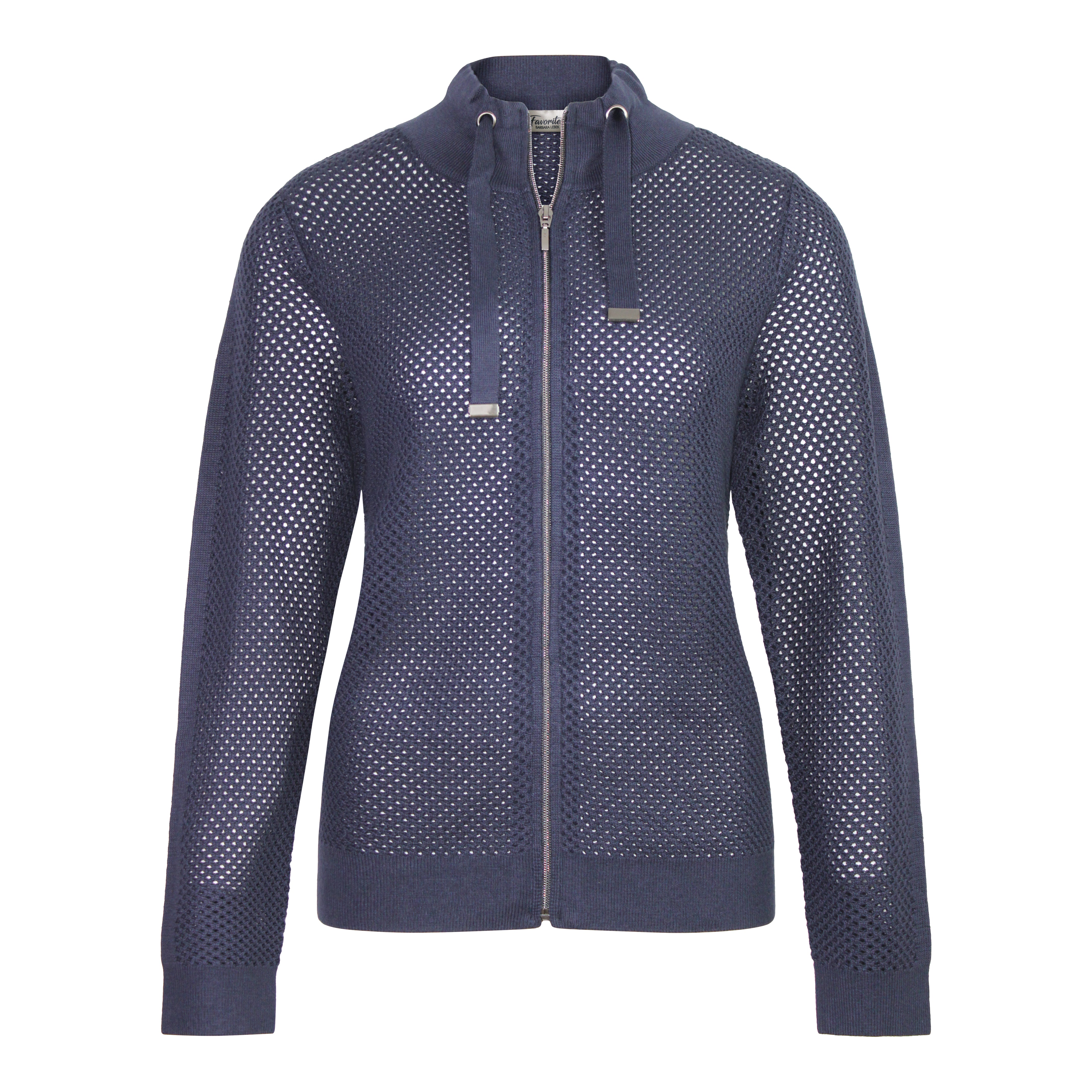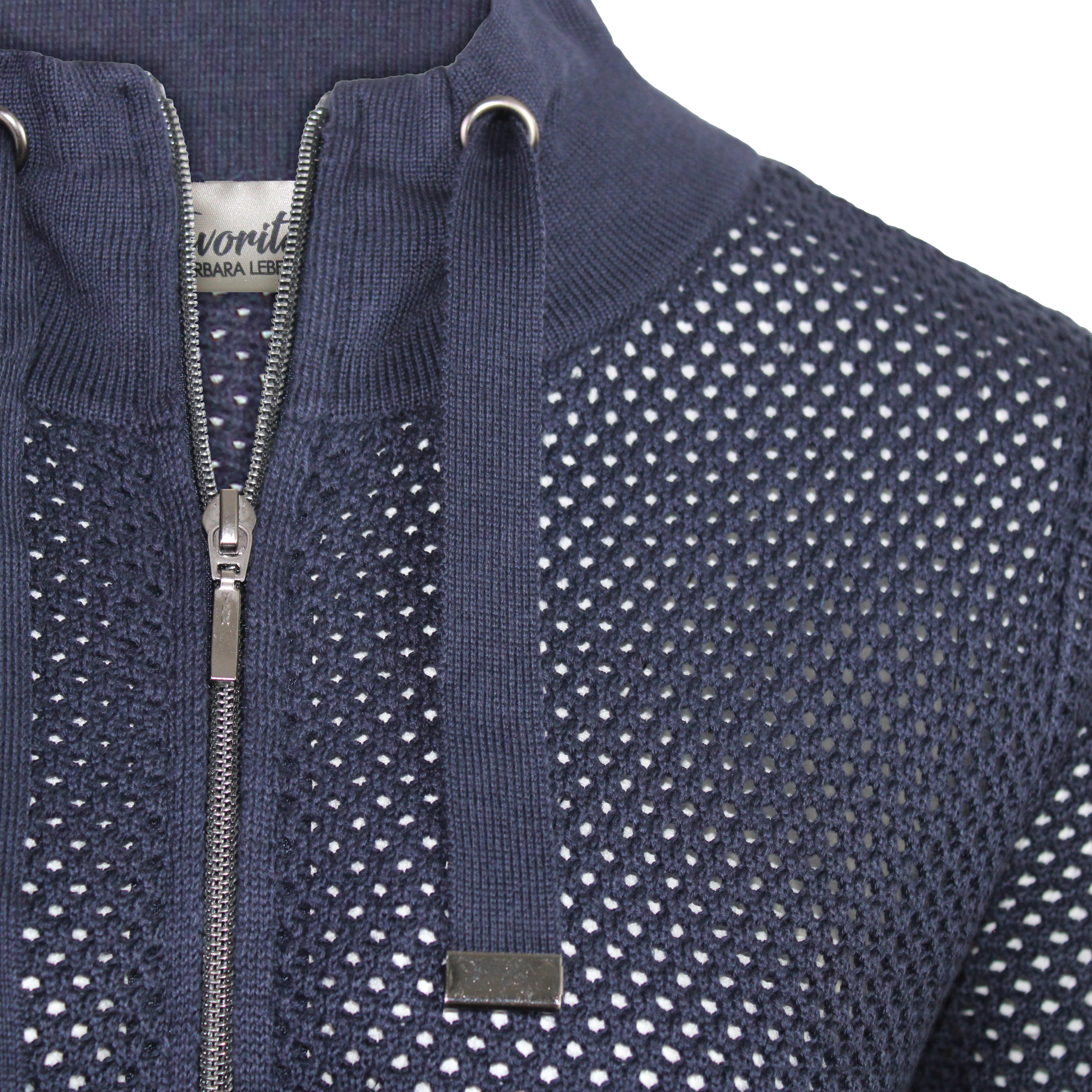 Modern ajour vest van Barbara Lebek in de kleur navy. Dit vest heeft een mooie pasvorm en is makkelijk te combineren. Dankzij de jersey kwaliteit draagt het comfortabel en voelt het prettig aan. De opstaande boord met koordje geeft het vest net dat beetje extra, waardoor het meer is dan een basic vest. Perfect voor een casual look.