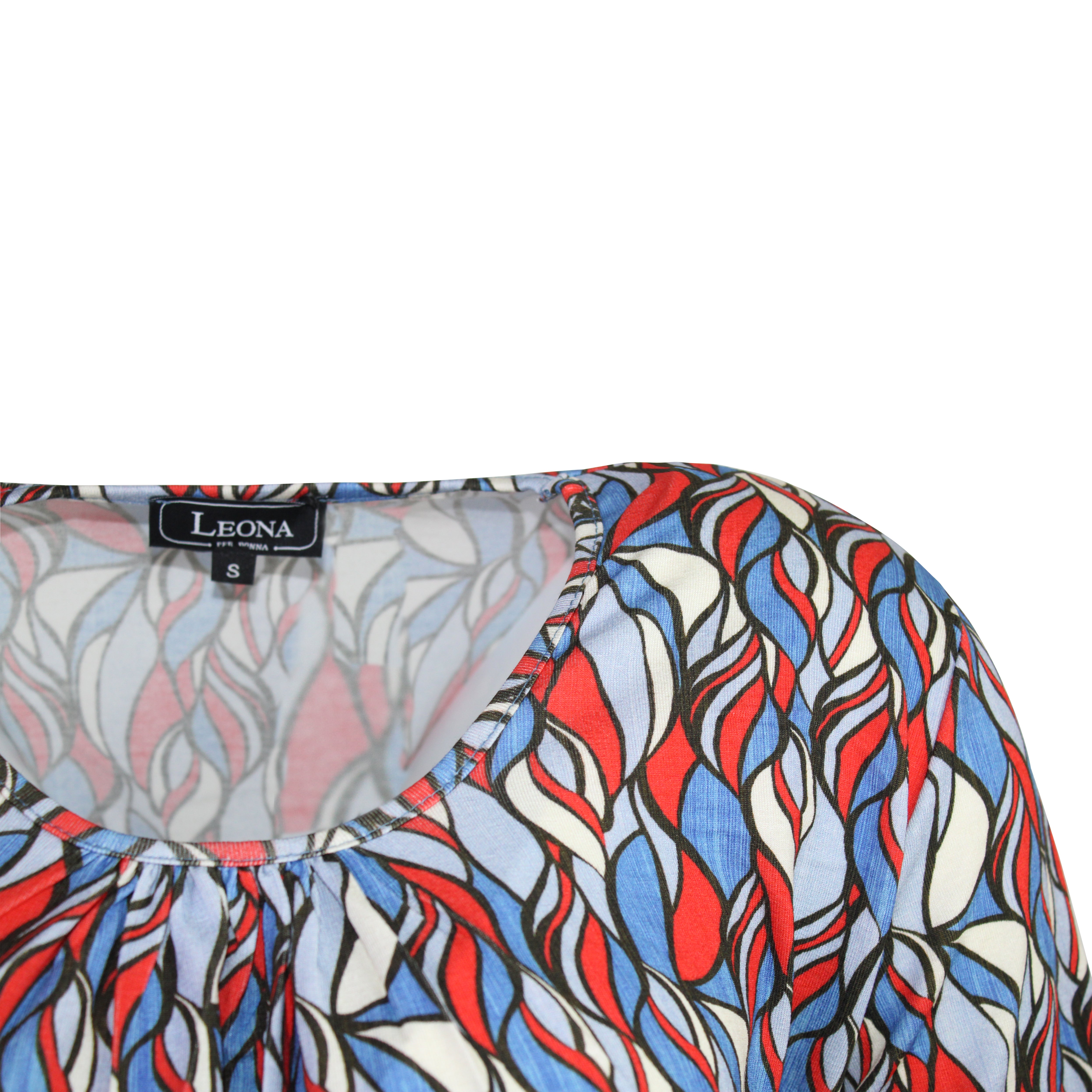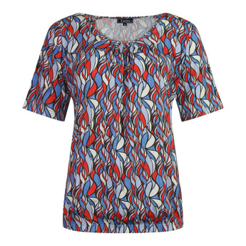 Deze fleurige blouson met blue-red flame print is een echte must-have. Mooi te combineren met een blauw of rood vest. Dankzij het dunne elastiek in de zoom krijgt het model een subtiel blousend effect. De zachte, elastische jersey voelt heerlijk soepel aan en draagt super comfortabel.