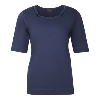 Een tijdloos shirt met een vrouwelijke touch. De opengewerkte ronde halslijn geeft dit shirt net dat beetje extra. Dankzij de zachte, elastische katoenstof zit het heerlijk comfortabel. Ideaal voor elke dag en makkelijk te matchen. Verkrijgbaar in meerdere kleuren.