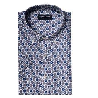 Overhemd Blauw Bruin Medaillonprint