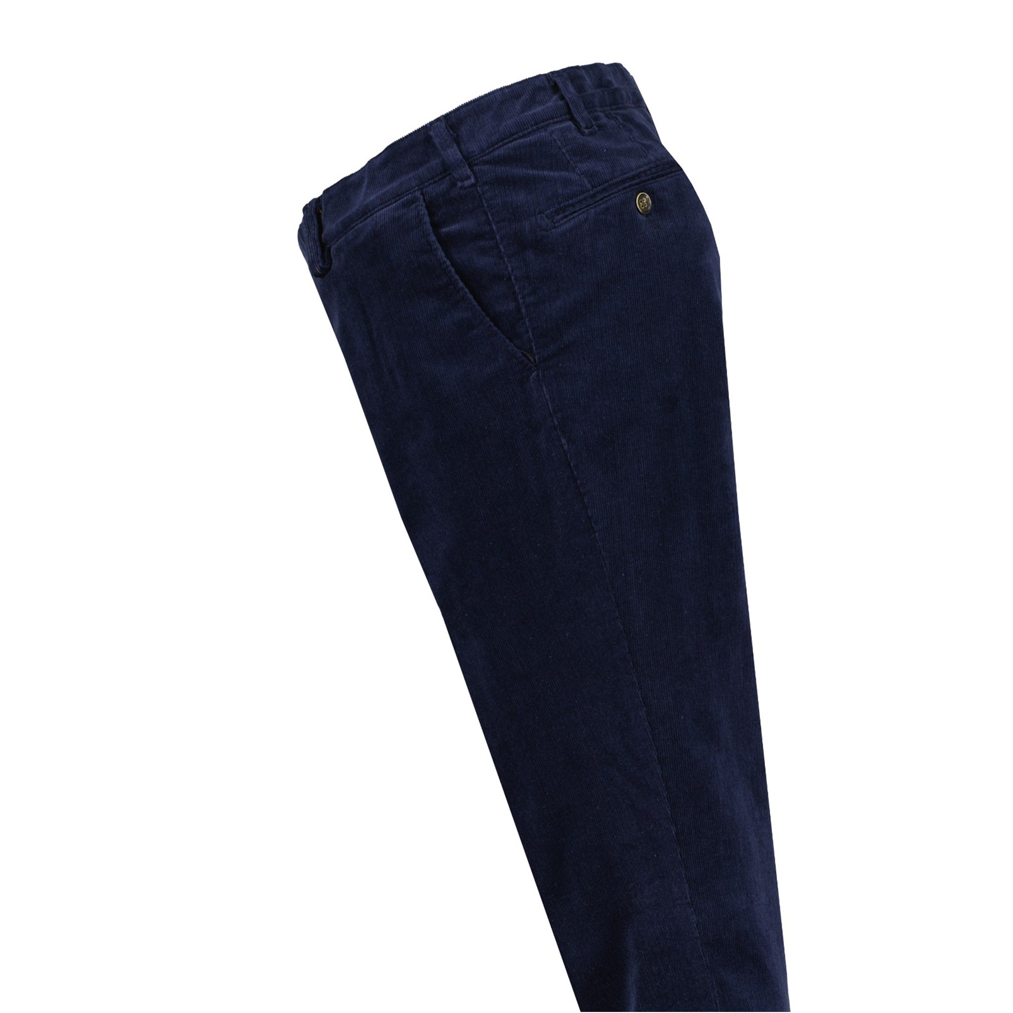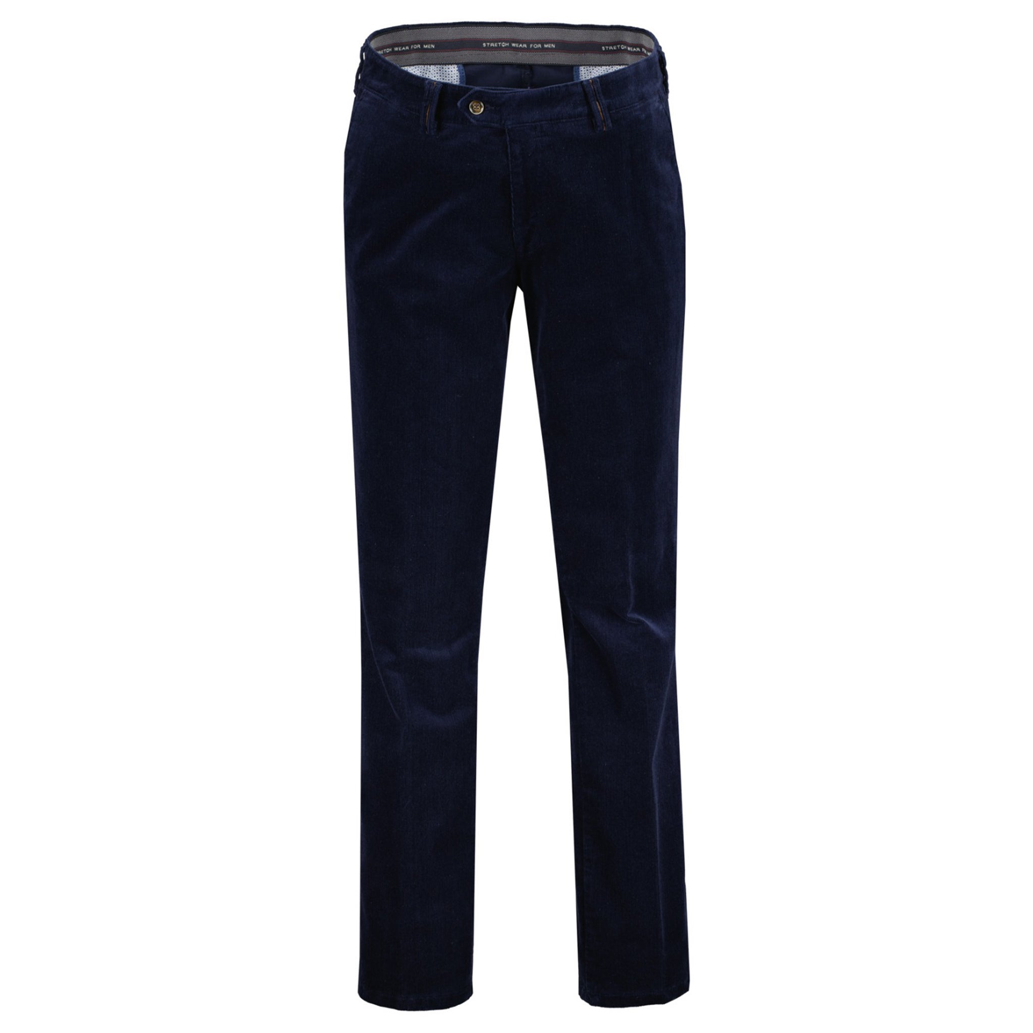 Klassieke herenpantalon met sluiting in een rib kwaliteit met elastische comfortband met lusjes om een riem doorheen te steken. De pantalon heeft steekzakken en afsluitbare achterzakken. De pantalon voelt soepel en zacht aan en heeft een optimaal draagcomfort.