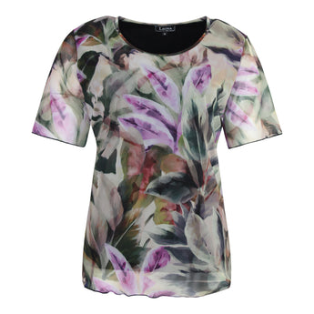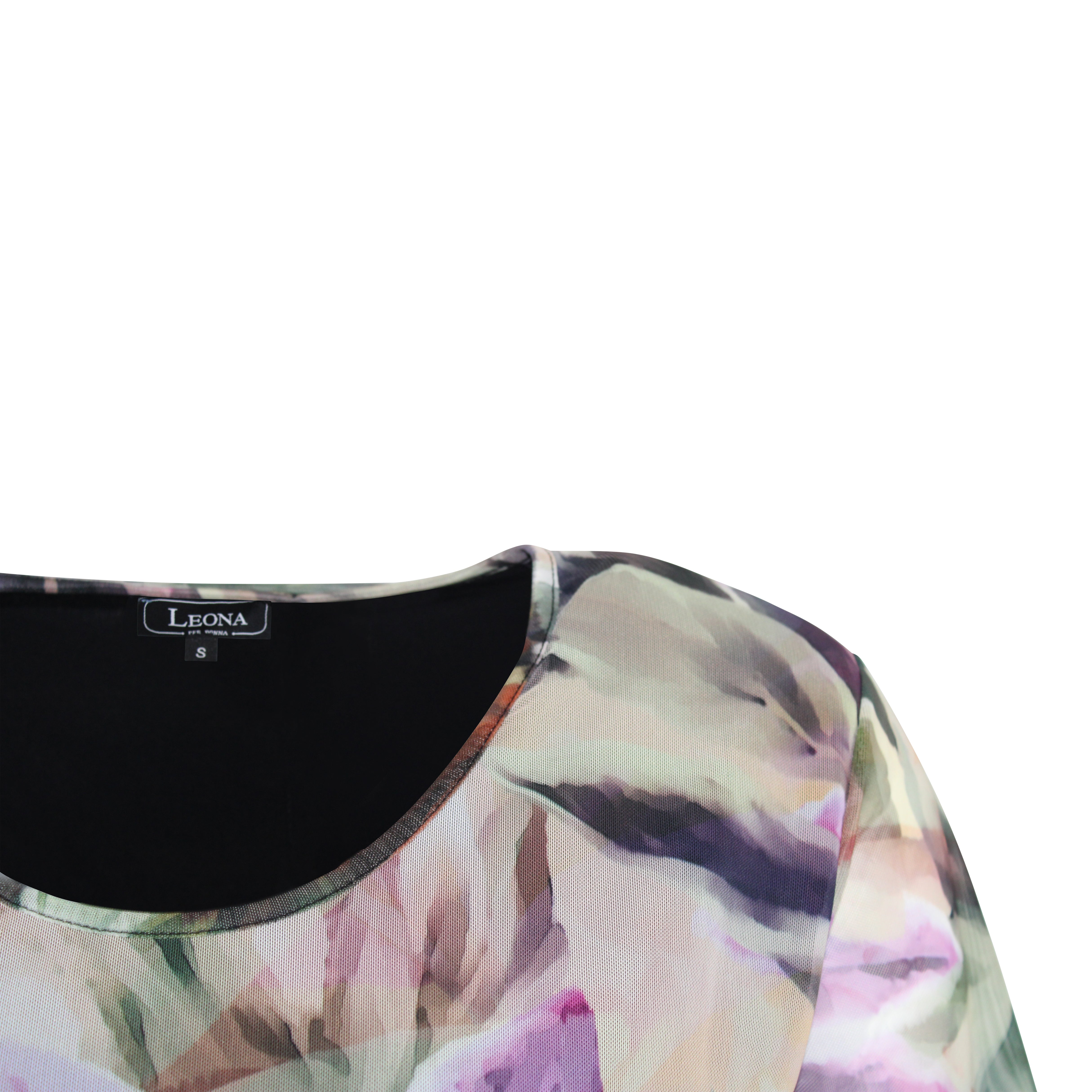 Een prachtig shirt in een mesh bloemenprint met zachte voorjaarstinten. De ronde halslijn en het golvende randje aan de zoom en mouwen geven het shirt een speelse, vrouwelijke uitstraling. Mooi op zichzelf, maar ook perfect te combineren met de bijpassende rok in dezelfde print voor een stijlvolle set