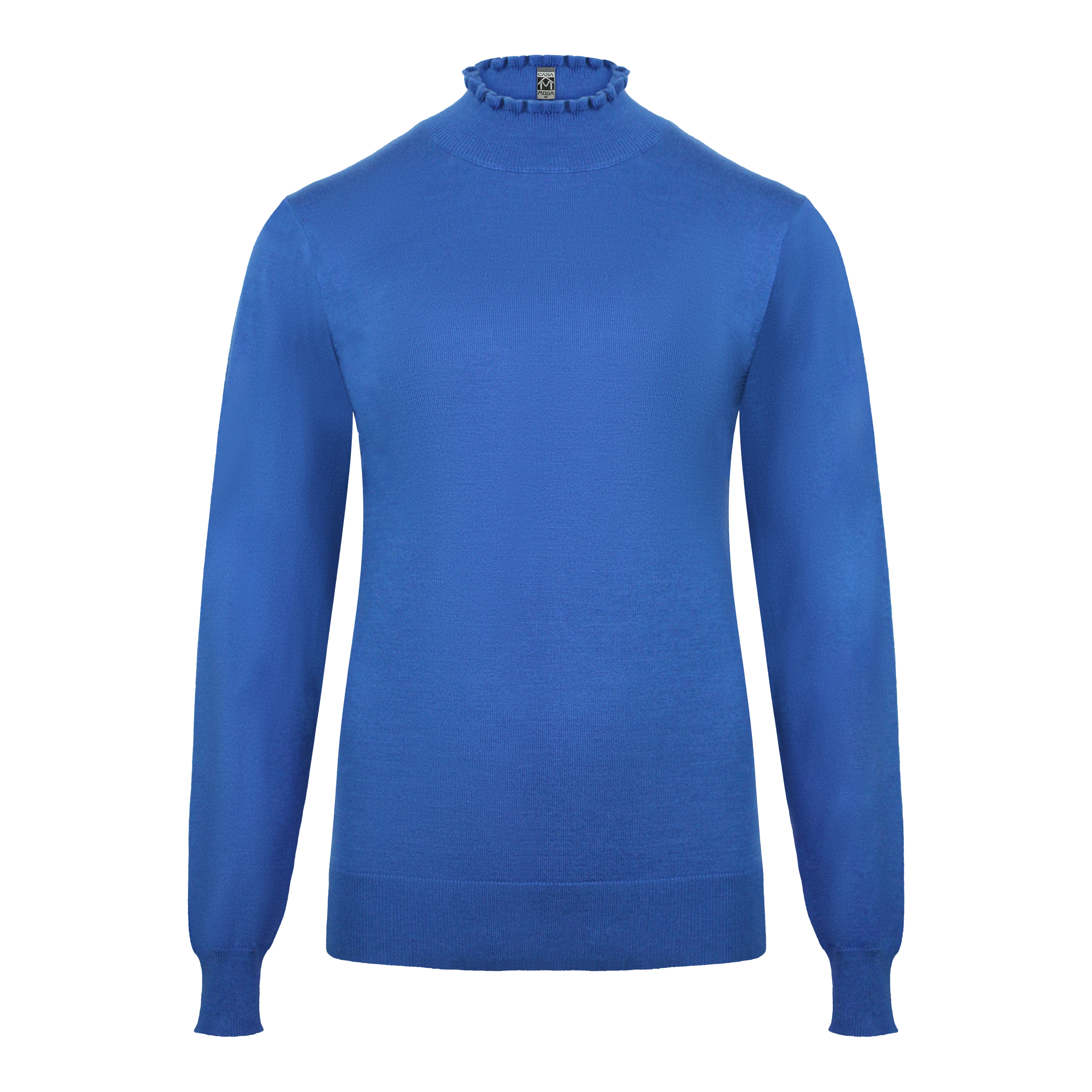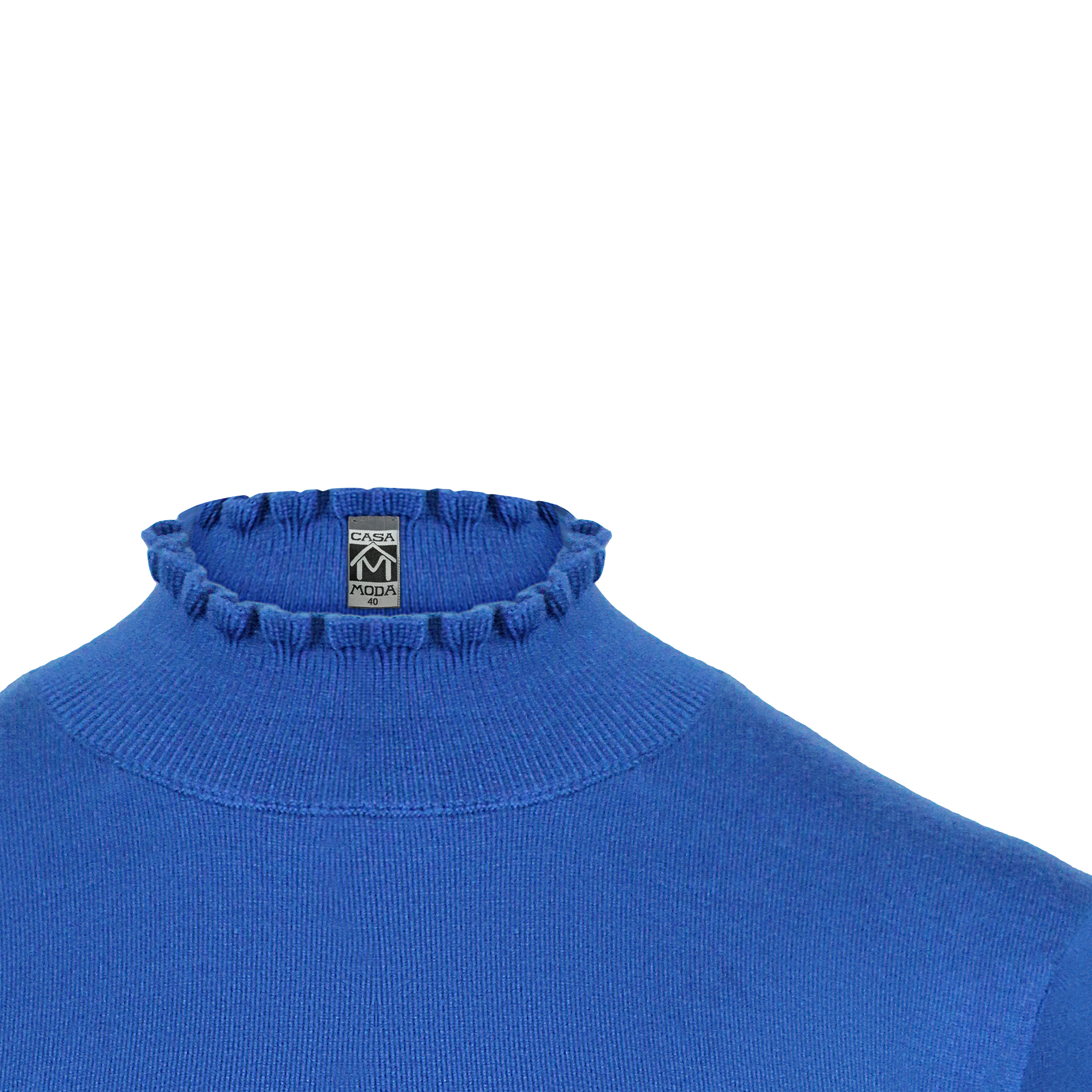 De turtle trui is gemaakt van een zachte soepele gebreide stofkwaliteit. De trui heeft een ruffle boordje langs de halslijn en lange mouwen.