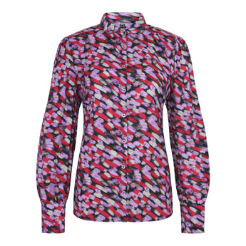 Elegante blouse valt op door de speelse grafische print in fleurige tinten. De klassieke kraag en knoopsluiting geven de blouse een nette uitstraling, terwijl de print zorgt voor een trendy en moderne look. Omdat de blouse voorzien is van lange mouwen kan het item elk seizoen in het jaar gedragen worden. Combineer de blouse met een effen broek of rok om de print mooi tot zijn recht te laten komen.
